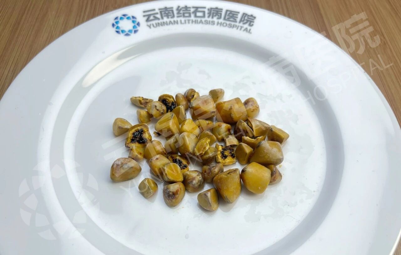 最终,云南结石病医院肝胆外科王恺主任,通过“腹腔镜下胆囊切除术”,为李女士切除了病变胆囊,并从切除的胆囊中,取出数十颗0.7-1.5厘米结石。
