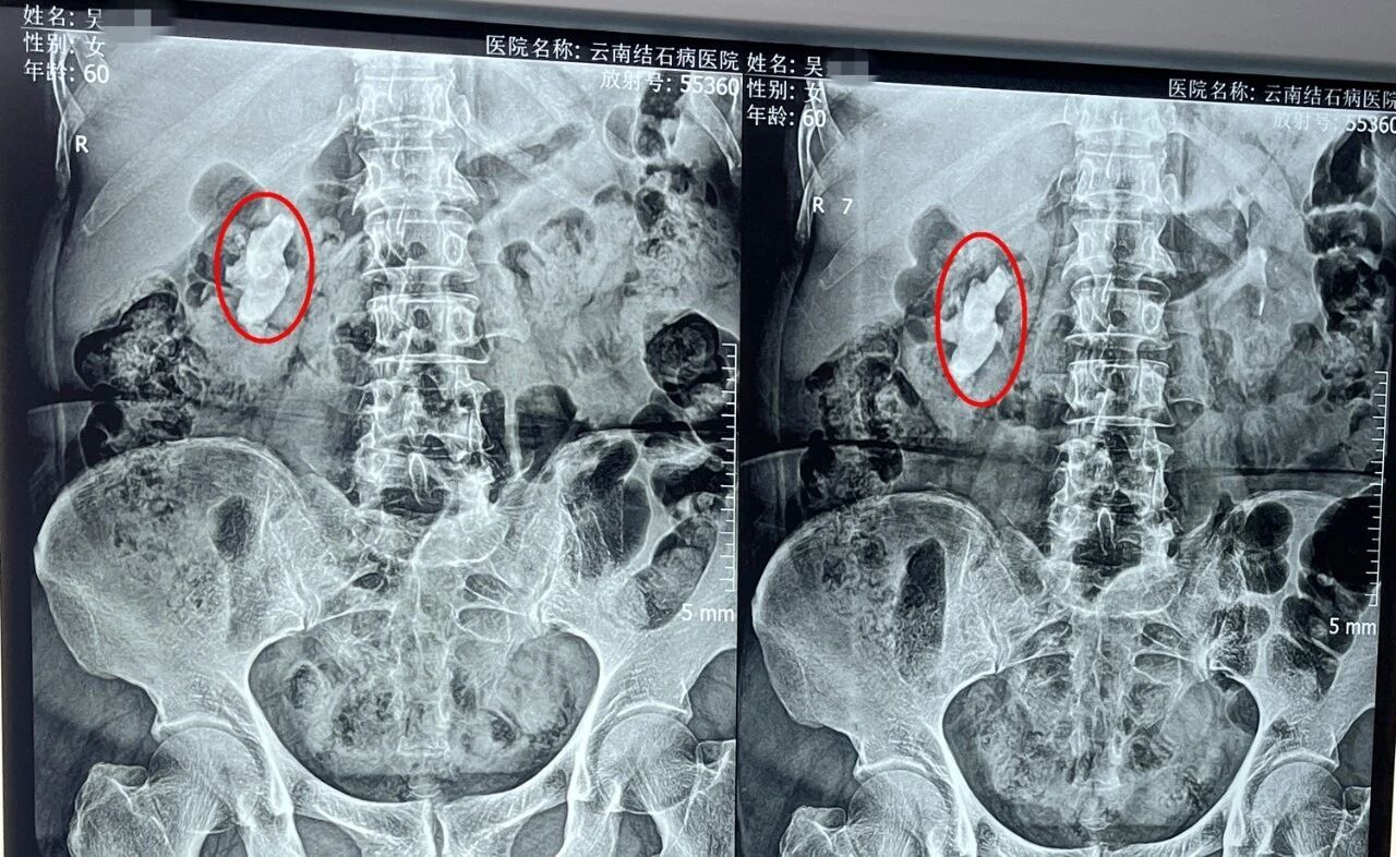 去年12月底,吴女士毫无征兆地突发右腰绞痛,疼痛难忍的她紧急前往当地医院就诊,被诊断为“右肾多发结石”。由于当时症状尚可忍受,她选择了药物治疗,期待结石能自行排出。然而,一段时间过去,疼痛反复发作,复查结果显示结石非但未排出,反而引发了肾积水。意识到问题的严重性,吴女士专程从昭通赶到云南结石病医院寻求治疗。