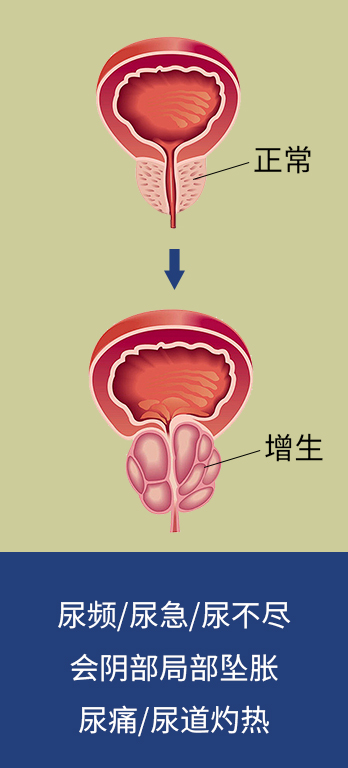 增生压迫尿道,导致尿线变细、排尿费力,甚至完全无法排尿